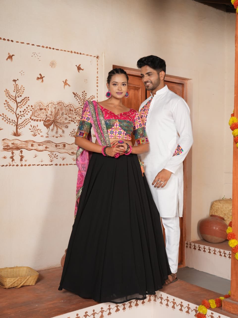 Elegant Couple Traditional Navratri Lahenga Choli and Men Kurta Pair